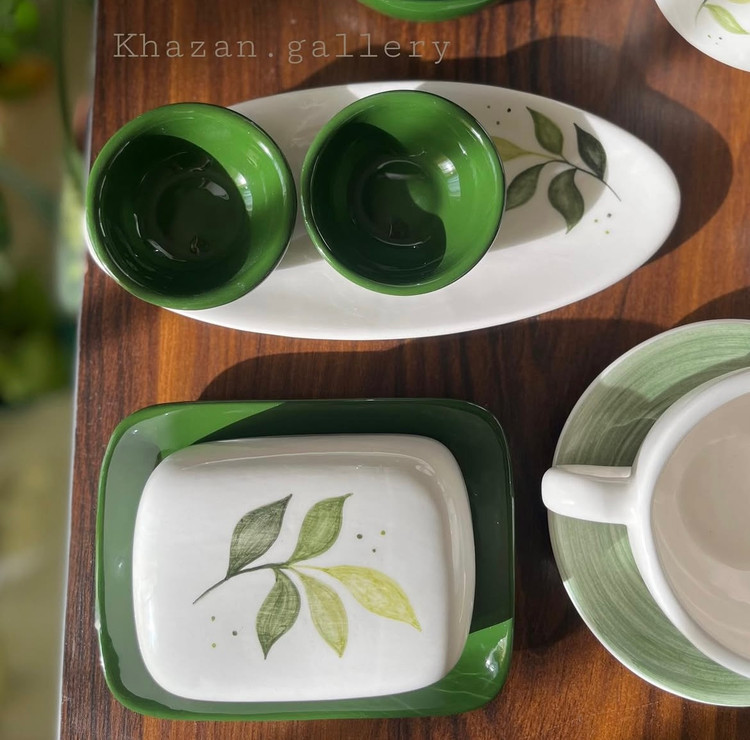 یک دیس پذیرایی با ابعاد 24*10 همراه دو پیاله کوچک (مربا، عسل، خامه و ...)