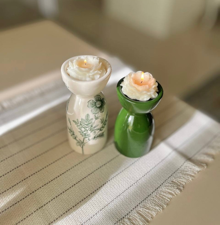 ست دوتایی شمعدون با طرح اسپرینگ سبز،با کیفیت رنگو لعاب درجه یک