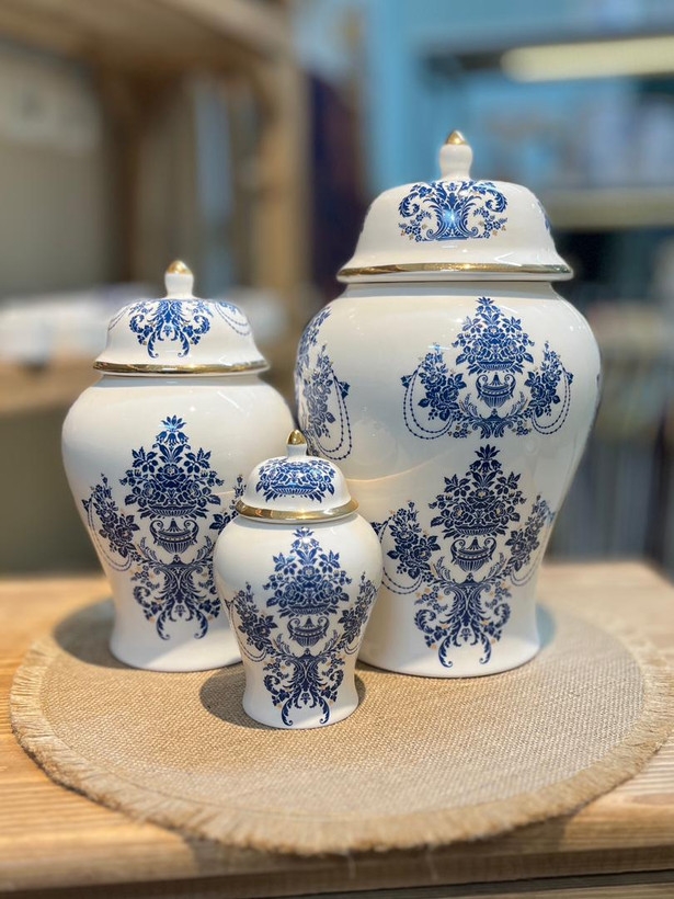 ست جینجر طرح ایمپریال از طرح های ترند این مدل کار ها با نقش های طلایی روی بدنه و درب هستش با سه سایز