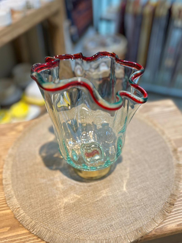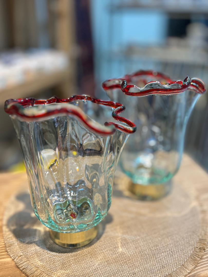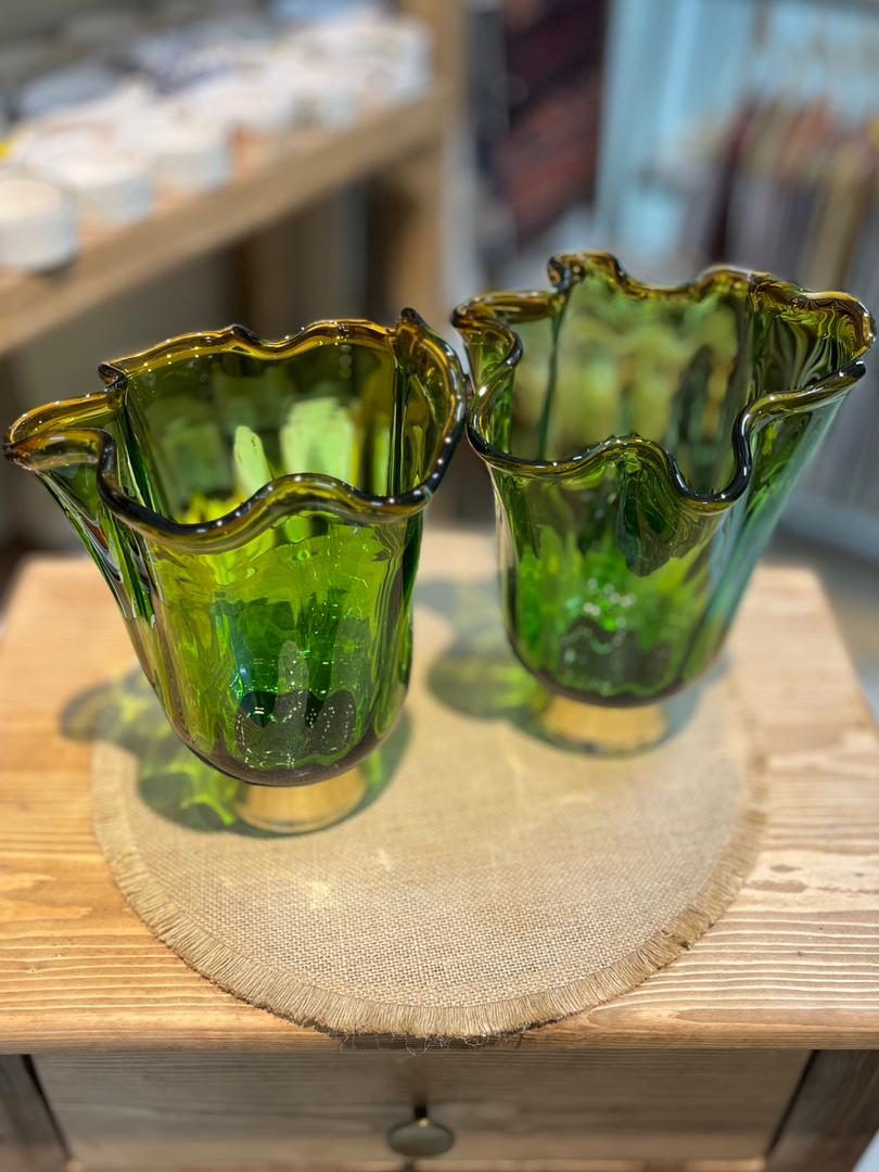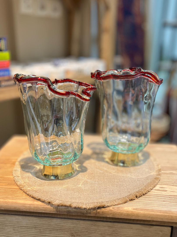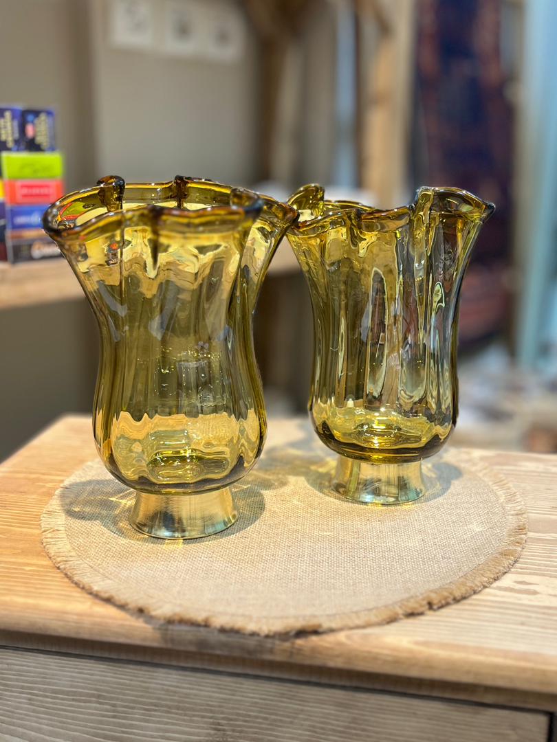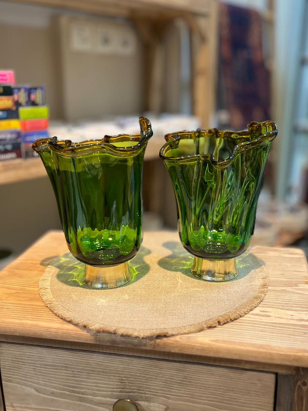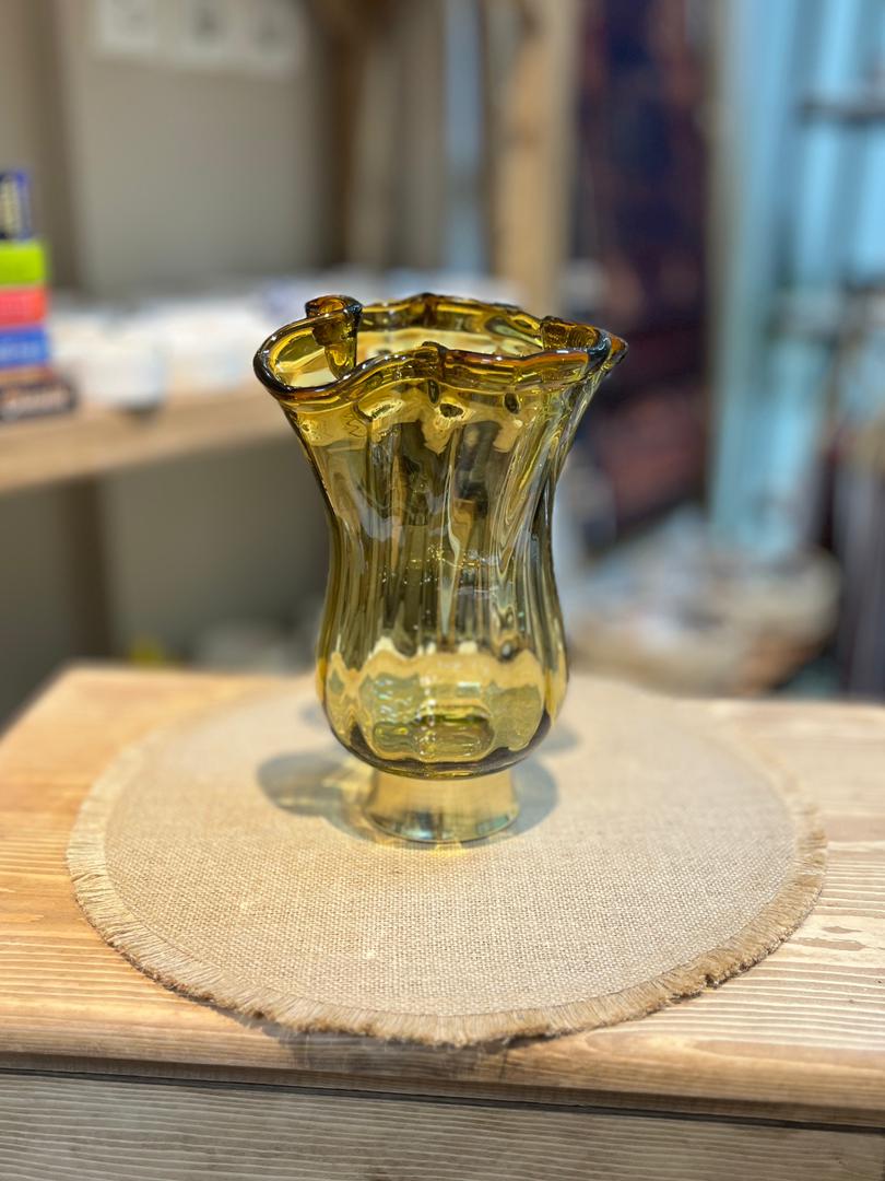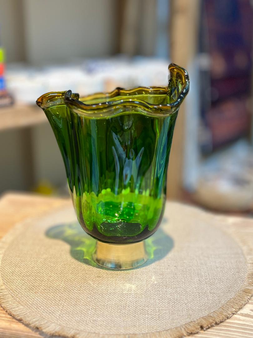 گلدان شیشه ای پایه برنجی